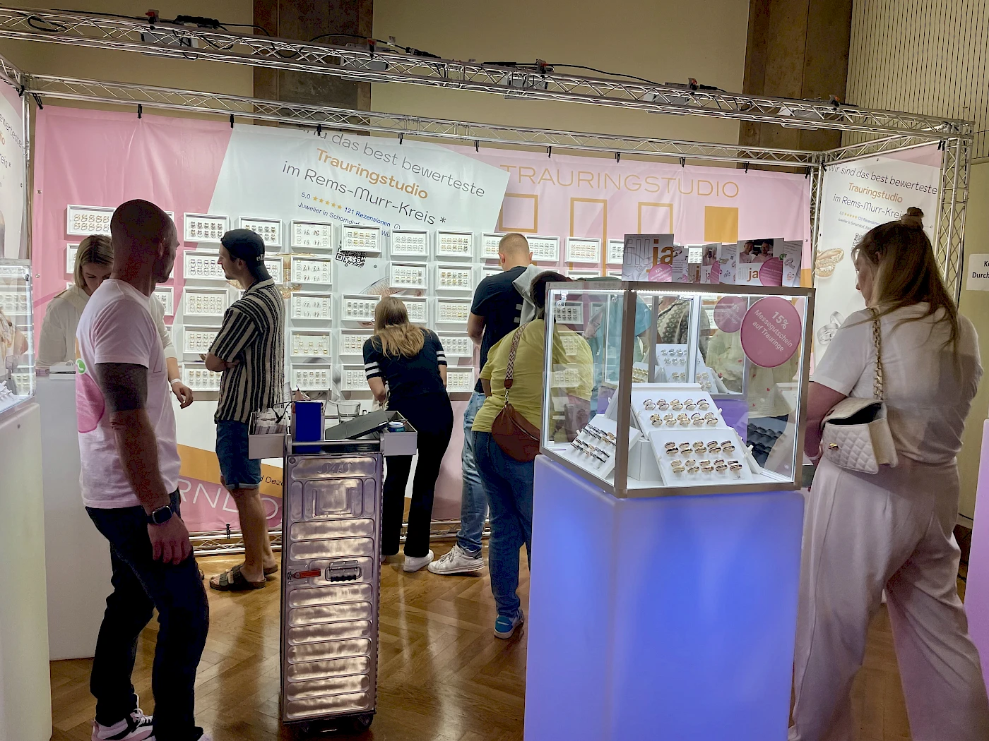 Die erste Wedding Flair Hochzeitsmesse im Ratskeller Ludwigsburg war 2025 ein voller Erfolg und ein echtes Highlight für alle zukünftigen Brautpaare. In der stilvollen Atmosphäre des historischen Ratskellers durften wir vom illja_trauringstudio zahlreiche Besucher begrüßen und unsere große Auswahl an Trauringen und Verlobungsringen präsentieren.