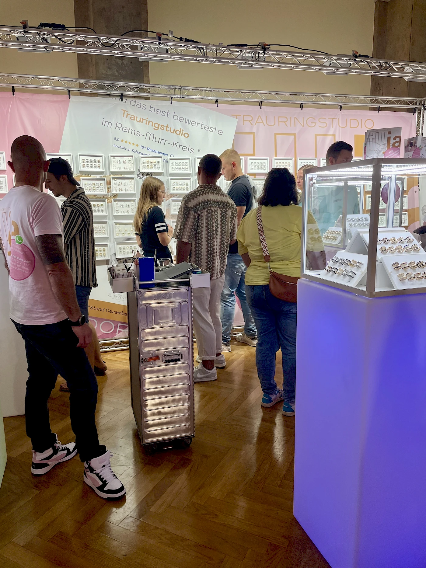 Die Stimmung war einfach grandios – ein herzliches Dankeschön an die vielen interessierten und unglaublich sympathischen Paare, die uns am Stand besucht haben. Es war uns eine Freude, mit euch über individuelle Ringdesigns zu sprechen und die ersten Schritte zu euren ganz persönlichen Trauringen zu gehen.