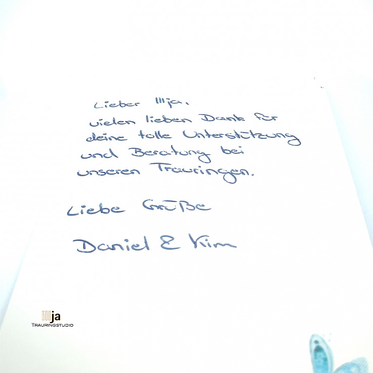 Liebes Illja, vielen lieben Dank for deine tolle Unterstitzung und Beratung bei unseren Trauringen Liebe Grüße Daniel & Kim