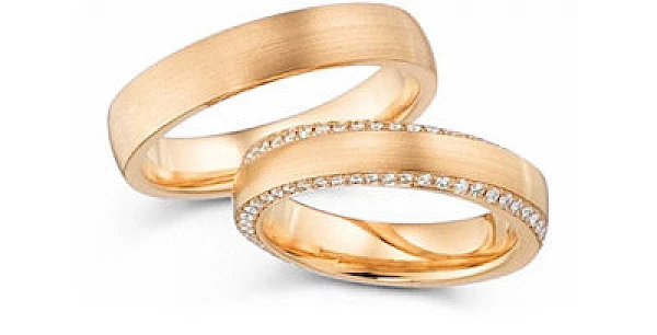 Noble Wertigkeit und klassische Schlichtheit lassen sich vereinen. Dieses wunderschöne Ringpaar fertigt die Firma Fischer Trauringe für uns. Sie haben die Möglichkeit aus verschiedenen Materialien wie Apricotgold, Gelbgold, Rotgold oder Weißhold 585/- oder 750/- zu wählen. Dieser Damenring ist mit insgesamt 0,50 ct Brillanten besetzt.