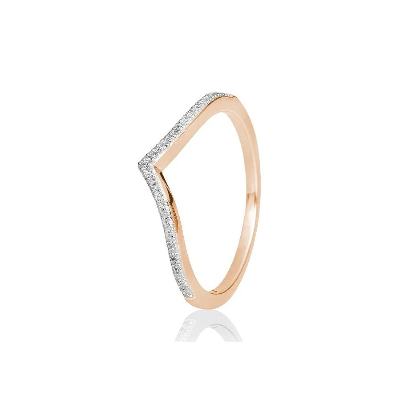 Breuning Memoire Ring in V-Form aus 585 Roségold verfügt über 25 Brillanten mit einer Gesamtkaratanzahl von 0,125ct. Die Diamanten sind als H/SI klassifiziert, was für kleine Einschlüsse steht, und haben die Farbe Weiß (Wesselton) sowie einen sehr guten Schliff.